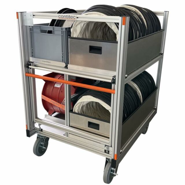 Der RC-Schlauch Standard 3 wurde speziell für den sicheren Transport von Schläuchen in Buchten entwickelt. Er bietet Platz für bis zu 25 B-Druckschläuche und ist optional mit einer robusten, geschweißten Alubox erhältlich.